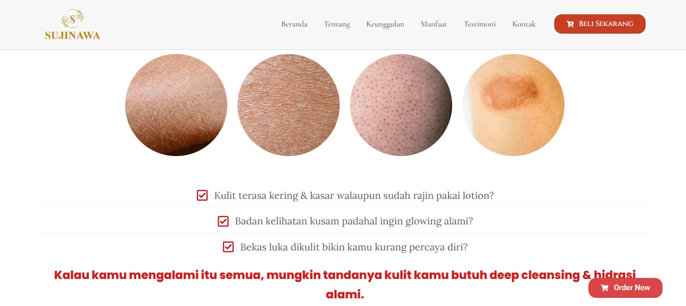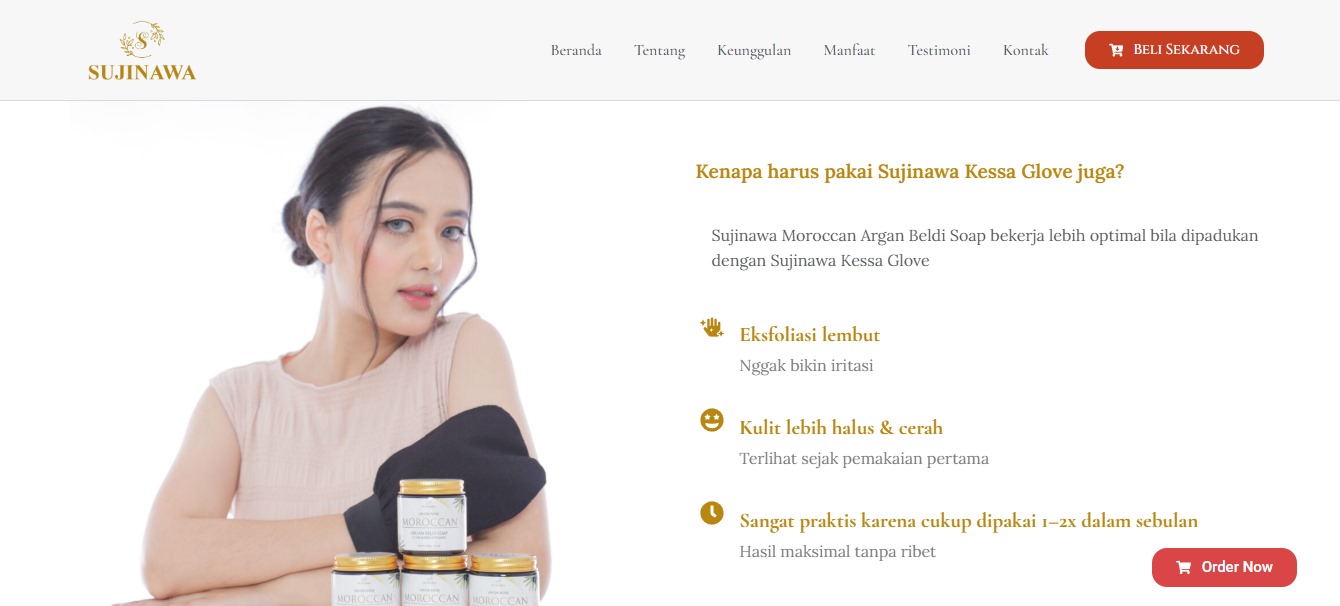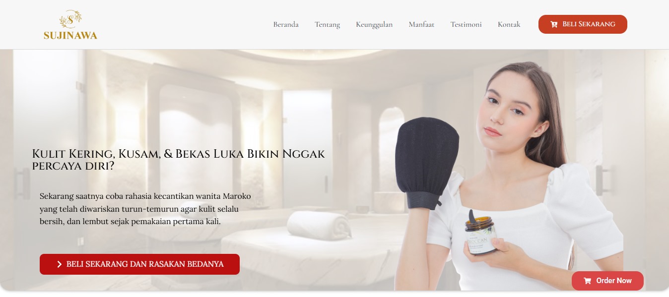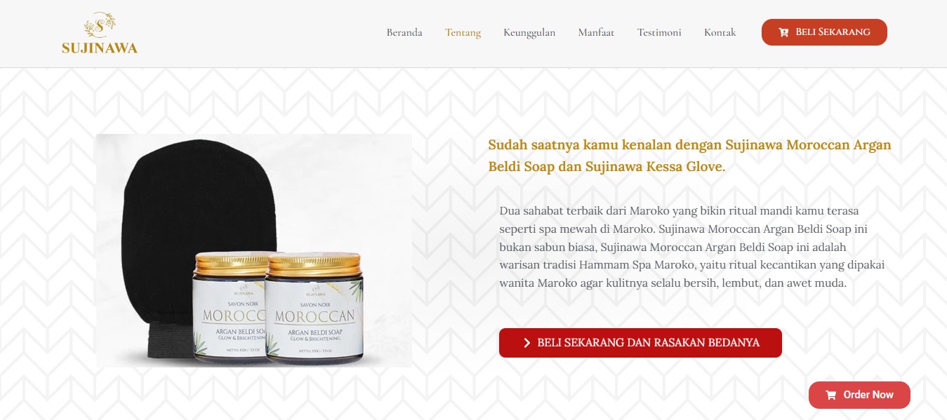 Sujinawa Nature is a product-focused landing page designed to promote Moroccan-inspired skincare products, specifically Moroccan Argan Beldi Soap and Kessa Glove, rooted in the traditional Hammam Spa ritual. The website educates users about skin concerns such as dryness, dullness, and scars, while guiding them toward a natural and effective skincare solution.